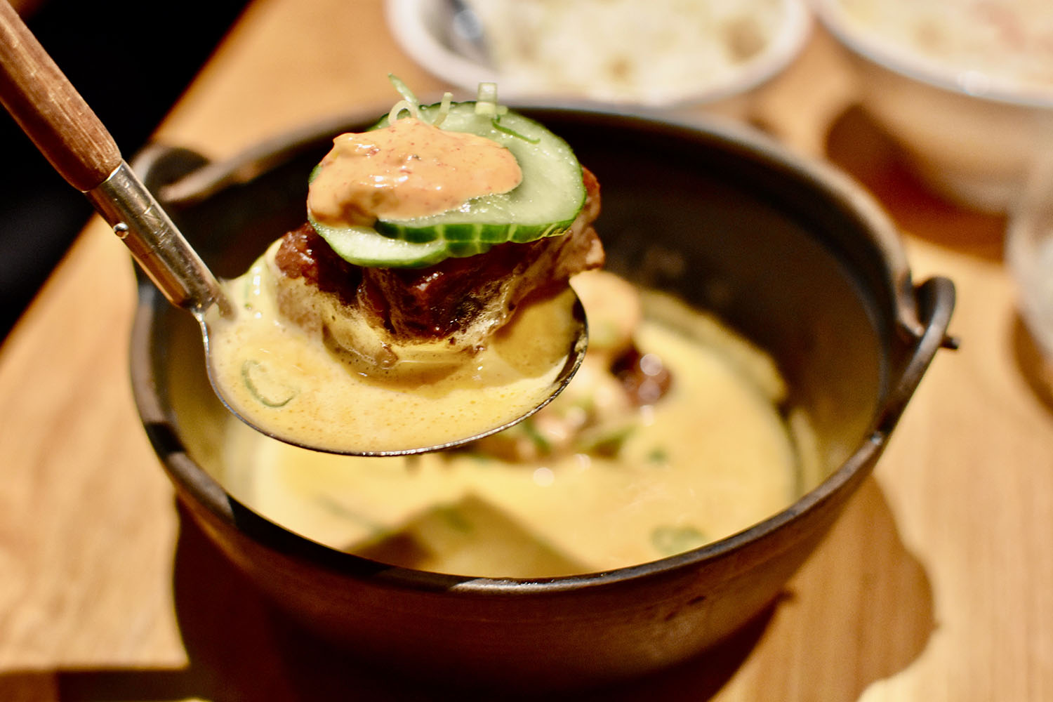 Soba House still maintains its one-star as of this writing (2023), and justifiably. It actually took us two tries to find the right one for our tastes, but the shoyu tsukemen hits all the spots. The accompanying broth has so much depth and flavor.