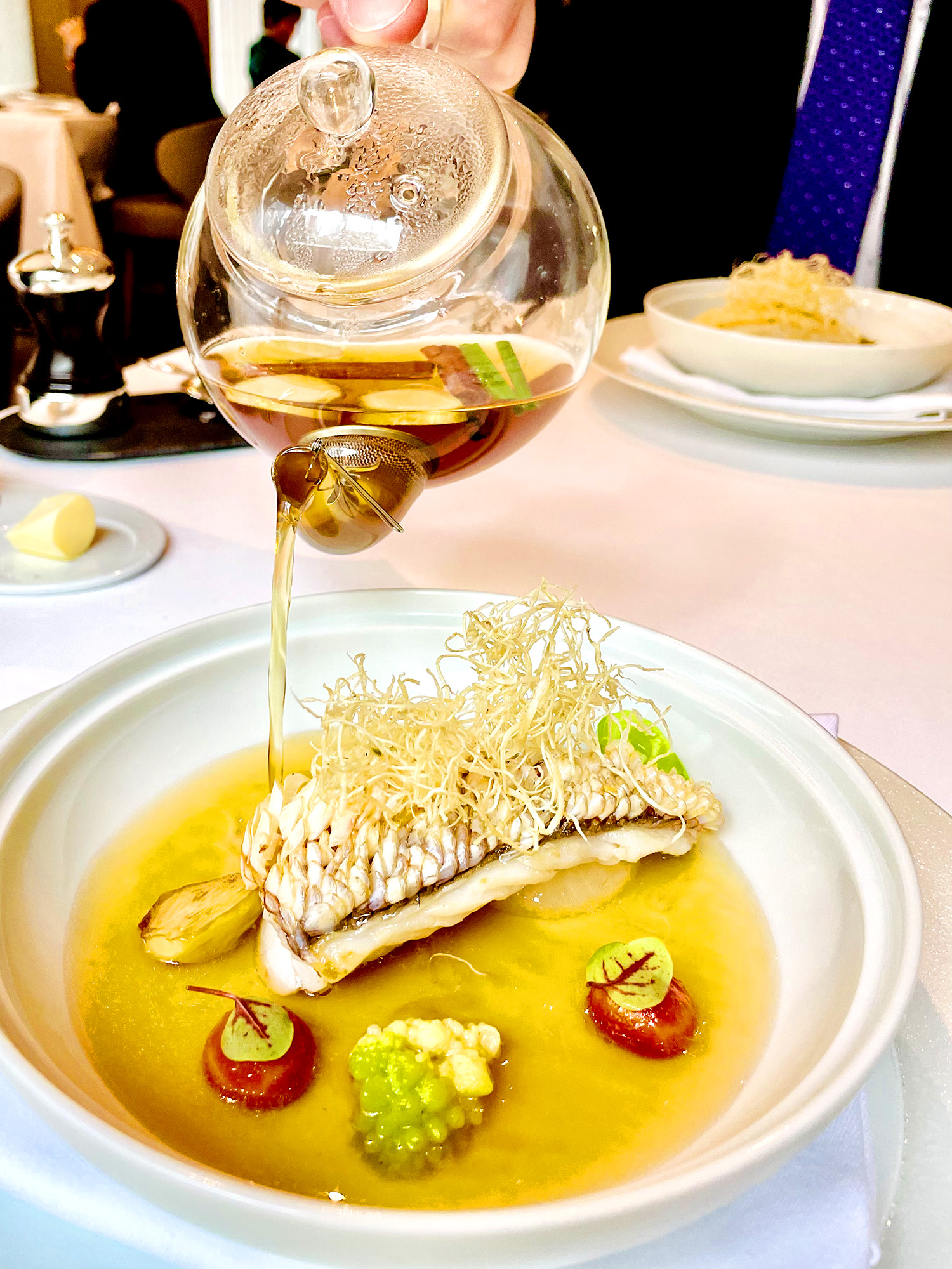 This two-star “informal” dining fare sits in an auspicious building with its three-star sister restaurant, Joël Robuchon. La Table has an exceptional offering at a, frankly, very affordable price point. True to its namesake, each course presentation is as much a work of art as it is a culinary culmination.